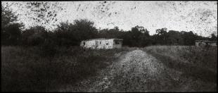Vaughn Wascovich, Abandoned Trailer Park #1, Swink, Oklahoma, 2011, digital print from pinhole paper negative,16 x 40", courtesy of the artist and AEC