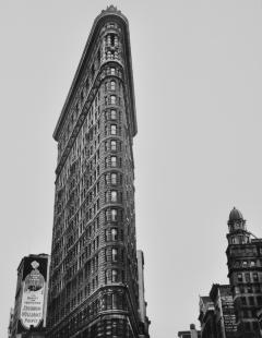 Berenice Abbott, Flatiron Building, 1936, Silver Gelatin Print, 13.5 x 10.5", courtesy of an anonymous lender, ©Berenice Abbott/Commerce Graphics
